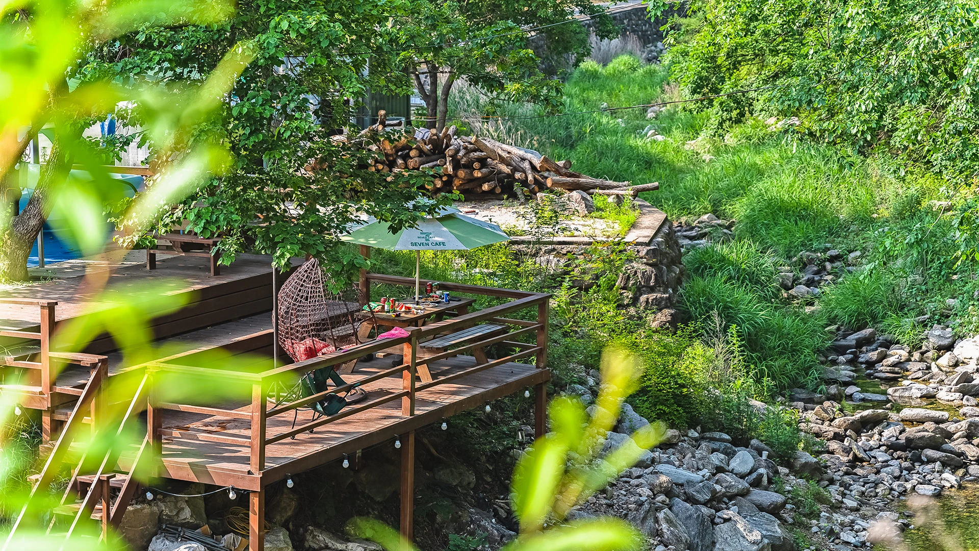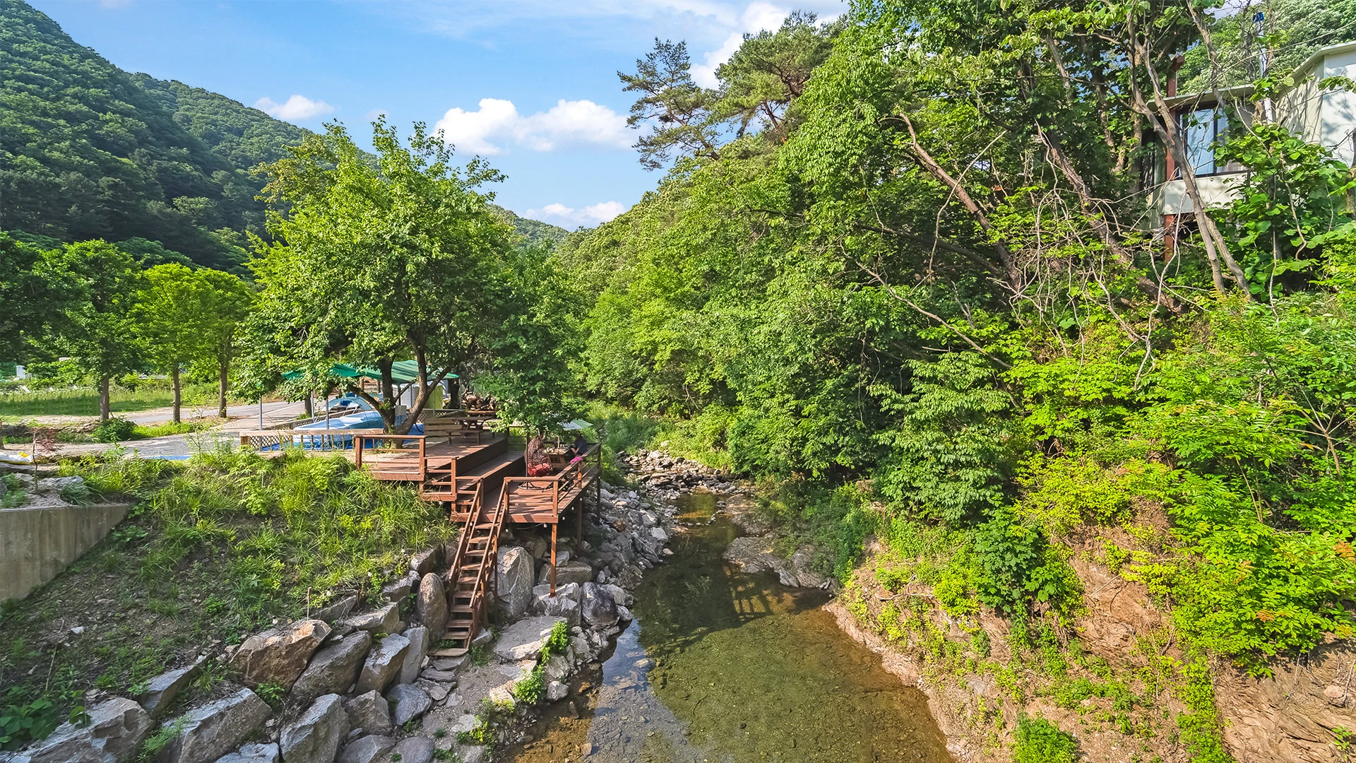 펜션 바로 앞에 시원한 계곡이 위치하고 있습니다.